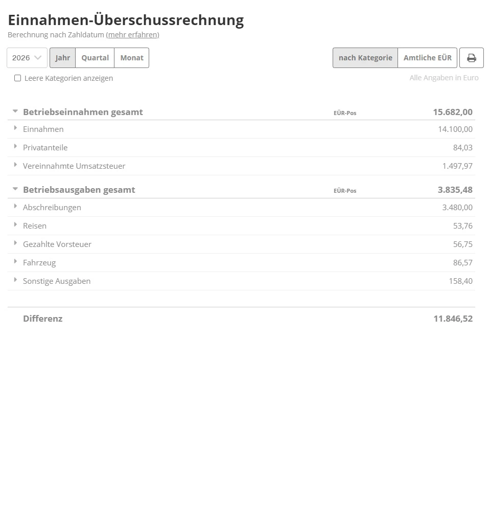 alle meine Einnahmen und Ausgaben fast von alleine.“