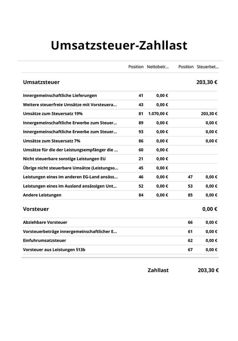 Kassenbuch, Umsatzsteuer-Voranmeldung,